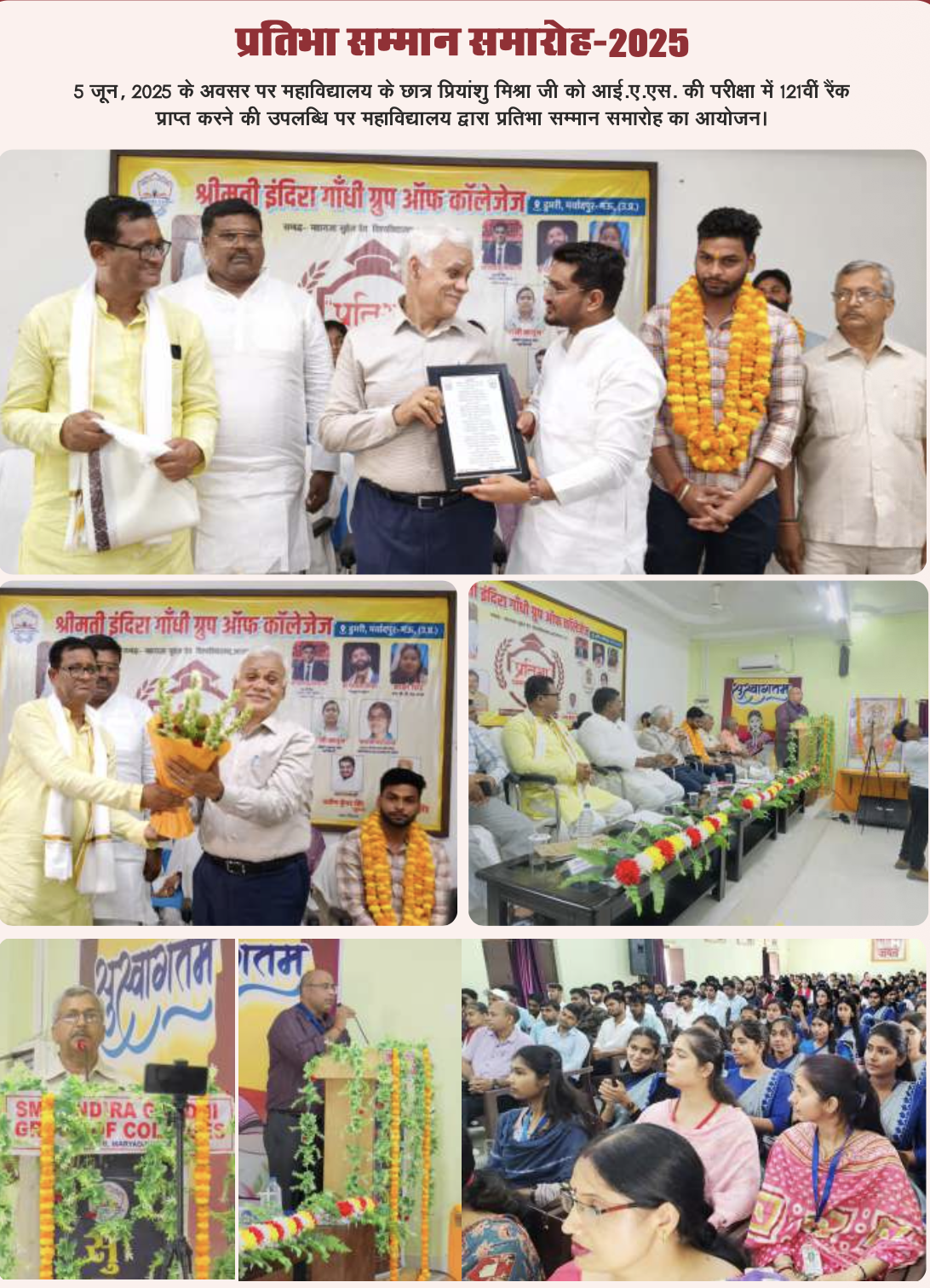 Established in 2005, Shreemati (Smt.) Indira Gandhi Mahavidyalaya is a degree college committed to providing accessible, inclusive, and quality higher education. The institution is managed by Kanti Seva Sansthan, a registered society dedicated to educational advancement, social development, and community welfare.